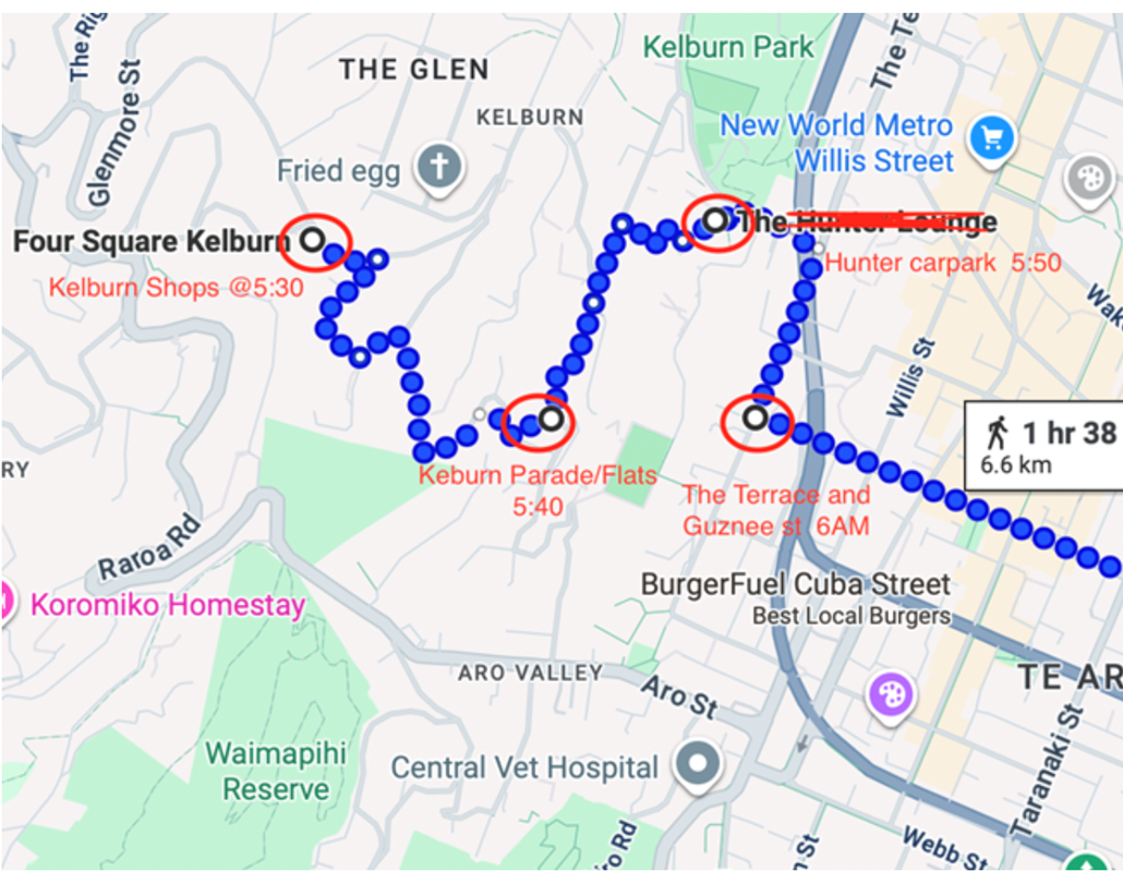 - Stop 3: Kelburn Campus - Hunter carpark 6.20am