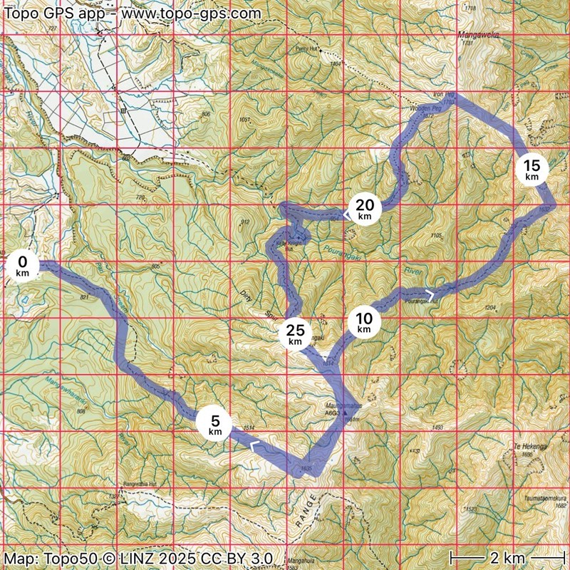 Day 1: Drive from uni to Rd end (2hr), walk to Kawakawa hut via Mangatoetoe hut (4-5hr, 10.7km)