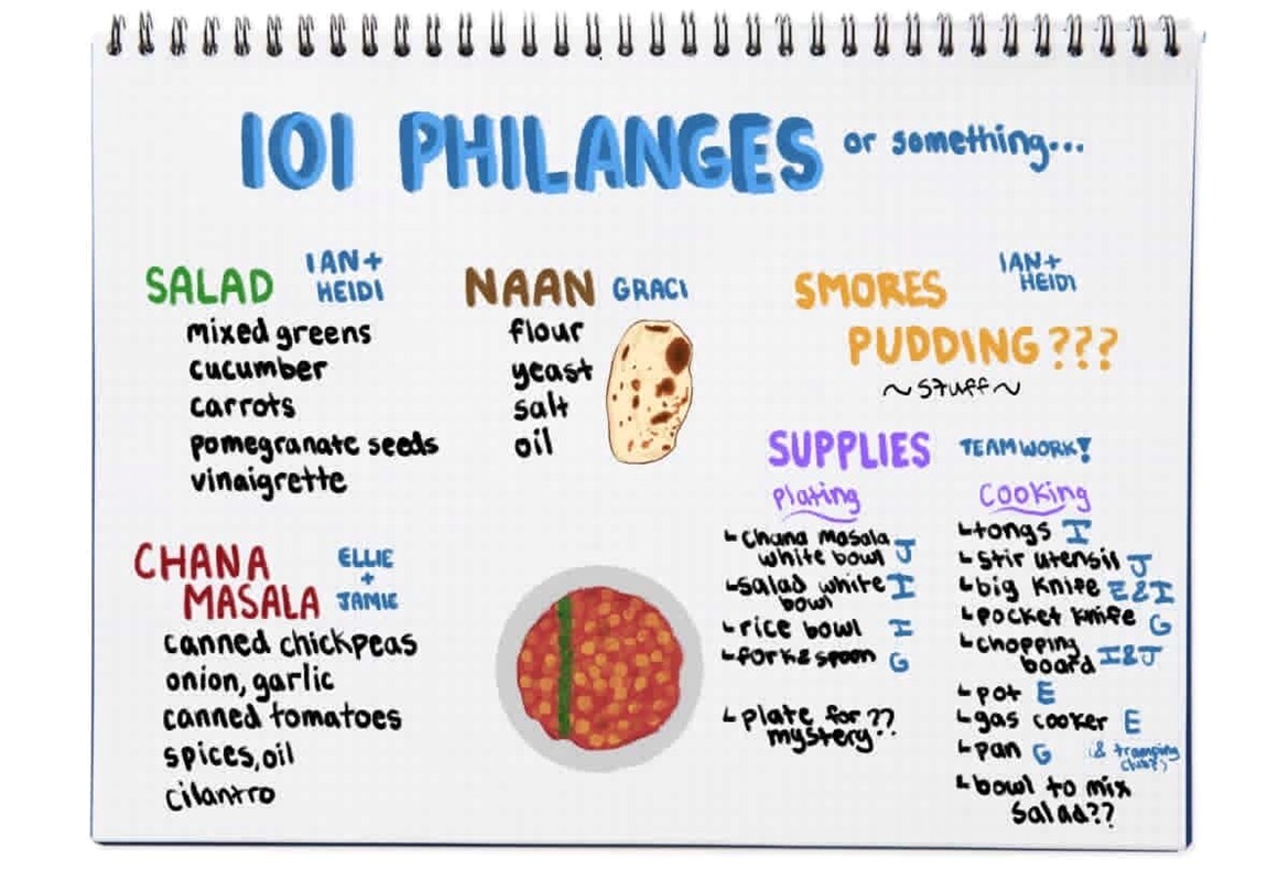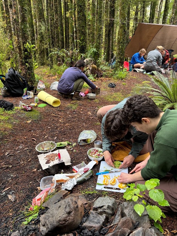Our team, the 101 Phalanges, set out to cook a delightful three-course meal that was easy to do on a tramp, warm, and nutritious. Our meal course consisted of a chana masala, which had canned chickpeas, tomato, onions, garlic and indian inspired spices. It was served with homemade naan, which was assembled and pan-fried at camp. We also created a mixed greens salad with cucumbers, carrots, pomegranate, and a balsamic vinaigrette. For dessert, we crafted up a smore's pudding with a biscuit base, two types of Whittaker's chocolate and marshmallows on top. It was a fantastic time cheffin' with the team because we all had our strengths and taught each other along the way. We also had a great time coming up with our menu and deciding how we were going to make a unique, tasty, and tramp-able meal. While it may seem gourmet, it was all phalanges on deck as we carried in canned goods, a few veggies, and some sweets and made a simple and tasty meal in less than 45 minutes! It was a super fun way to spend the weekend with our team members, Ellie, Gracie, Heidi, Jamie, and Ian!